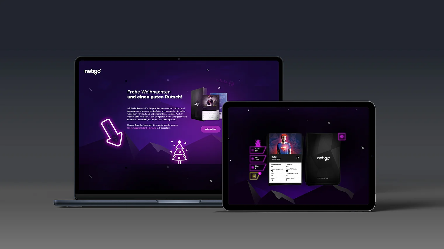 Im Rahmen unserer Weihnachtskampagne setzen wir auf Gamification, um unseren Kunden das Netigo-Team auf unterhaltsame Weise näherzubringen. Dafür entwickeln wir ein humorvolles Online-Quartett, in dem alle Teammitglieder mit individuellen Karten vertreten sind. Ergänzt wird das Spiel durch kreative Sonderkarten und Joker, die für zusätzliche Abwechslung sorgen und den Spielspaß steigern.