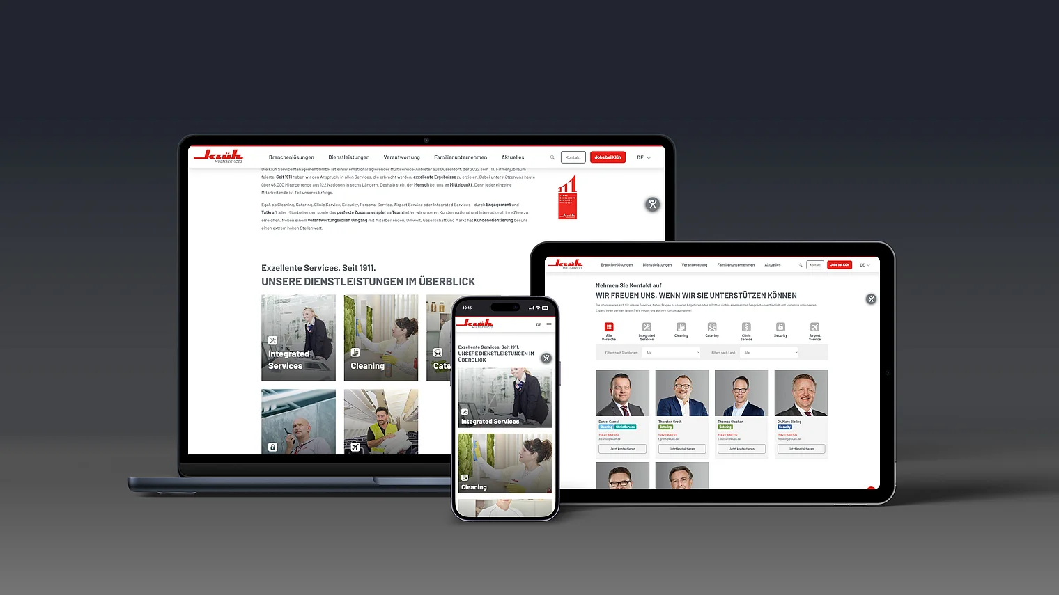 Für die Klüh Service Management GmbH haben wir als zertifizierte TYPO3-Agentur den Relaunch der Corporate Website klueh.de umgesetzt und dabei ein TYPO3-Multisite-System aufgesetzt. Die neue Plattform bildet den digitalen Kern der Klüh Gruppe: Sie zeigt die vielfältigen Dienstleistungen eines international agierenden Multiservice-Anbieters und stellt zentrale Inhalte, Standorte und Ansprechpartner übersichtlich zur Verfügung. Über das Multisite-System können künftig aus derselben Installation weitere Websites der Gruppe erzeugt und verwaltet werden — mit einheitlicher technischer Basis und flexiblen Designvarianten.